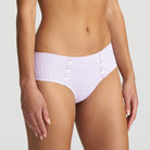 Hot pants have an elegant cut in the front like the Rio briefs and stop mid-bottom. These hot pants have a low rise. Completely opaque with two rows of Avero flowers in the front. Who could resist this stylish the pastel lavender?
