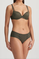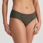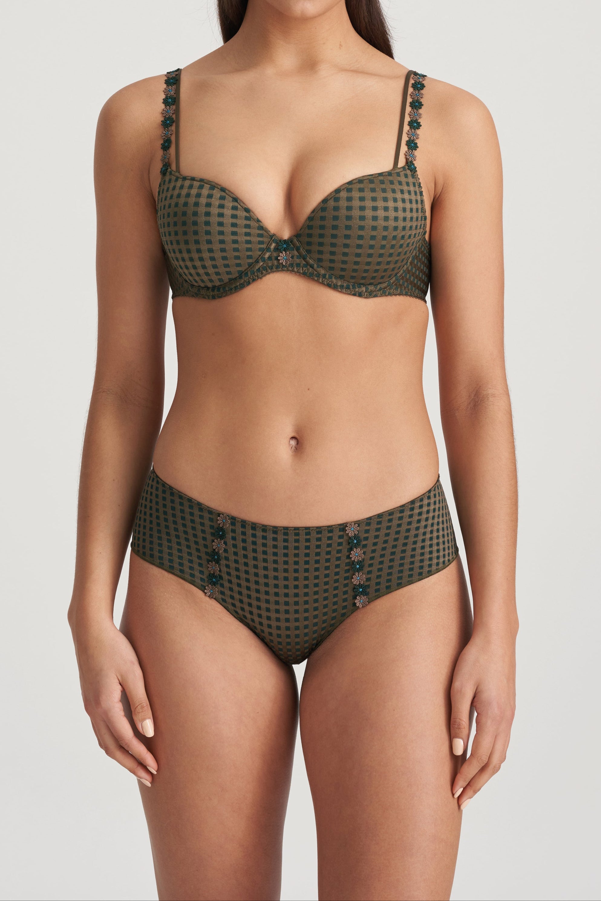 The Avero Hotpants are an attractive compromise between elegance and comfort. They combine soft, subtle, checkered fabric with a beautiful embroidered lace and daisy motif.