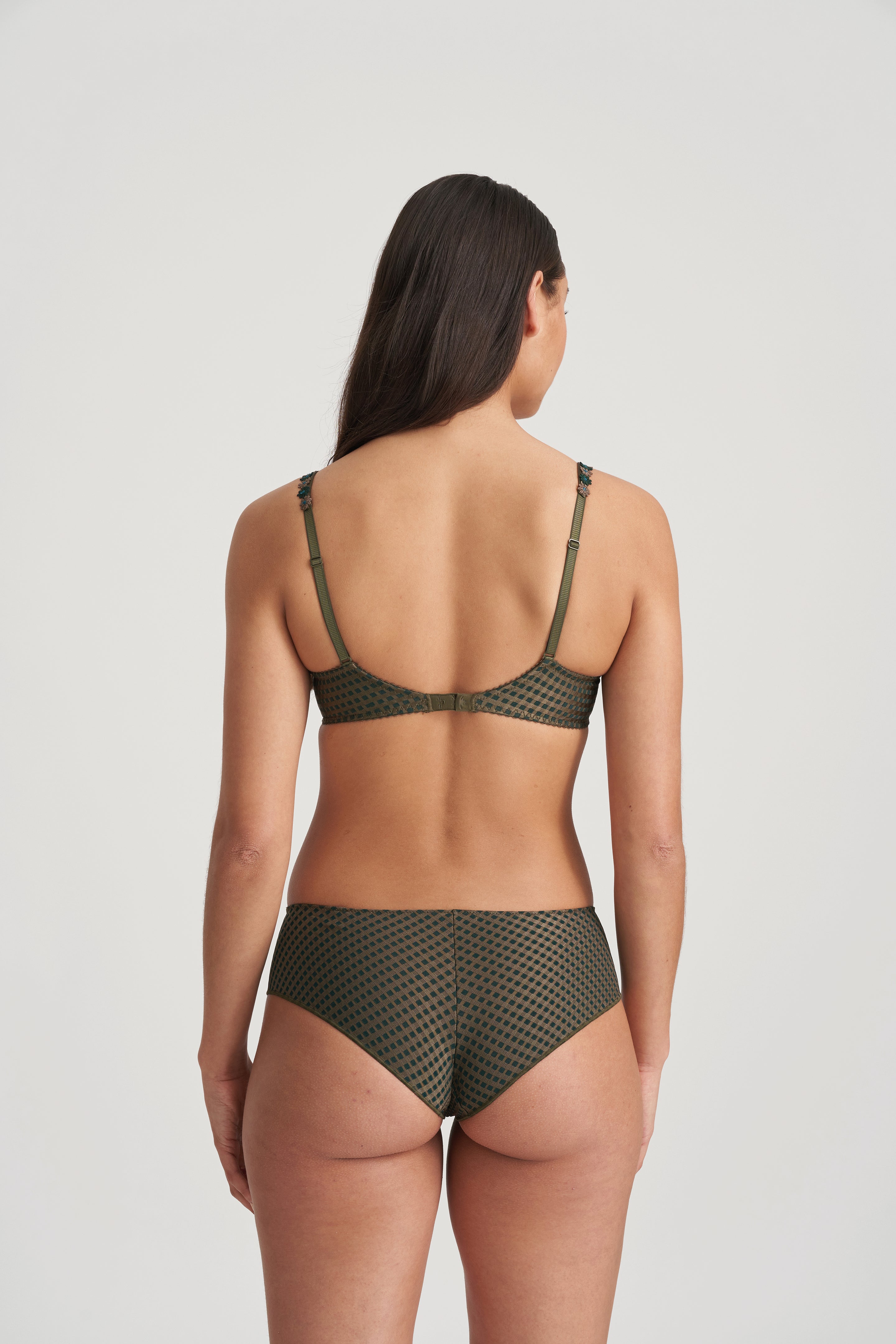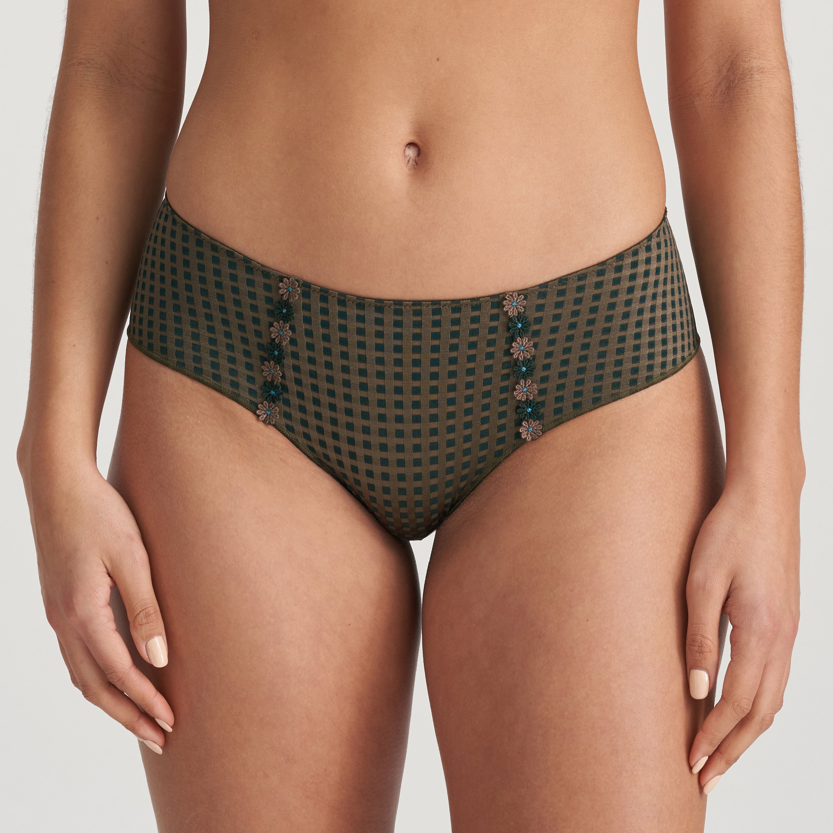 Hot pants have an elegant cut in the front like the Rio briefs and stop mid-bottom. These hot pants have a low rise. Completely opaque with two rows of Avero flowers in the front.