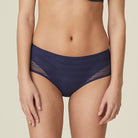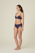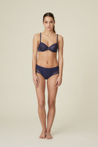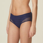 These sexy shorts entice with a flirty, sheer lace detail on the legs. The soft, seamless finish on the bottom does not show any lines. Bleu Bijou is a stylish dark blue.