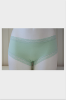 These boyshorts are sure to become one of your favorite panties. Lace trim makes them feminine without sacrificing any comfort. These panties are super soft and curve hugging without riding up or creating panty lines. Made of 95% modal and 5% cotton. Imported. Wash with care.