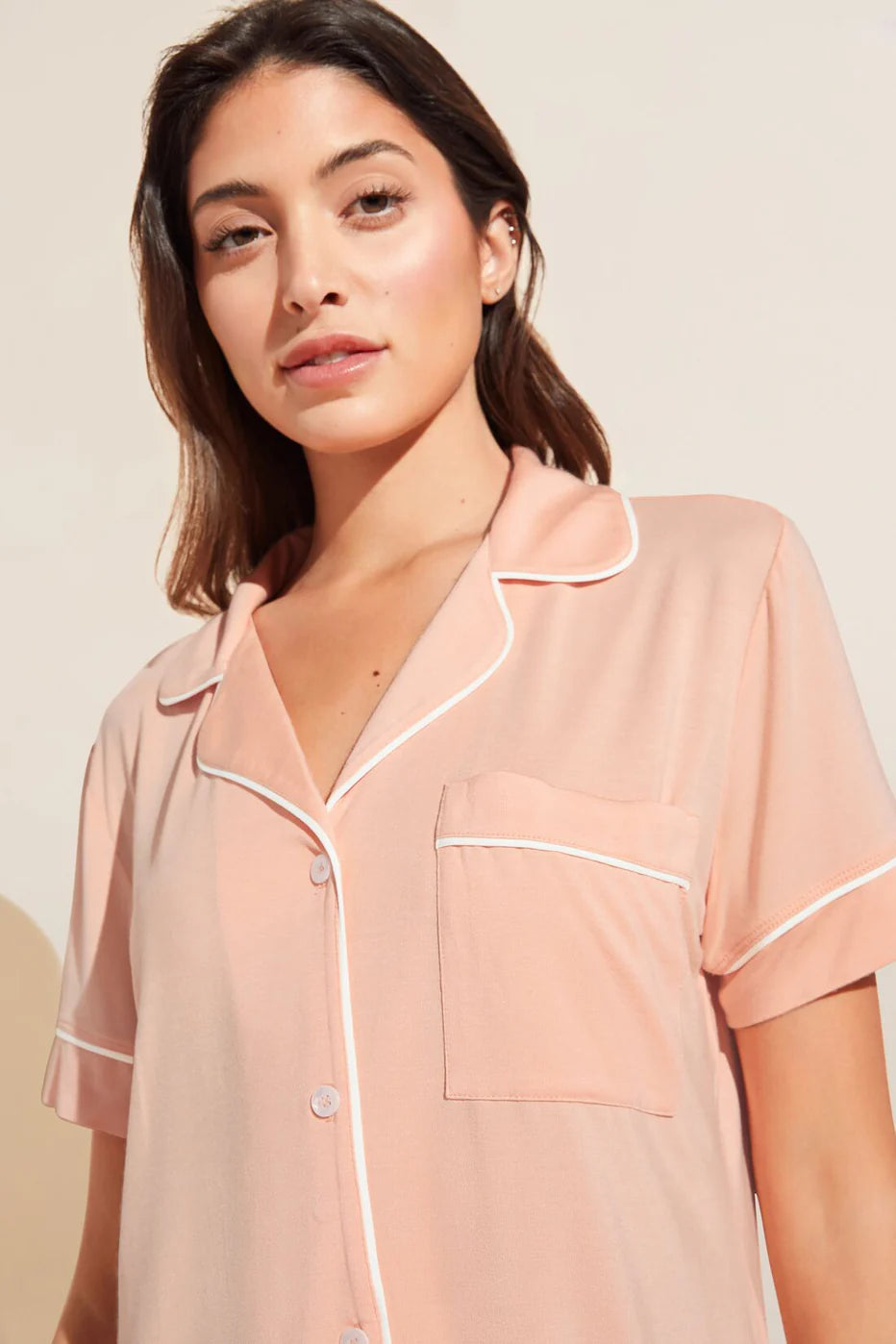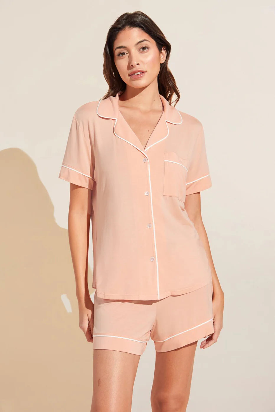 In the mid-2000s, we set out to create the world’s softest pajamas for a beautiful night’s rest. Gisele delivers, merging a classic men’s PJ silhouette with sustainable TENCEL™ Modal fibers. Our luxurious, temperature-regulating knit fabric drapes and falls in all the right ways, enveloping the body in comfort. Plus, it’s anti-pilling, machine washable, and gentle on skin, so it not only feels beautiful but it’s easy to care for too. This cheekier cut is ideal for hot sleepers or warm nights. For a longer, roomier fit, try our relaxed short PJ set.