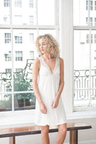 Italia chemise is tailored in soft jersey. It has a plunging neckline with beautiful lace detail. Relaxed fit with elastic around bust line for support. Composition: 95% Viscose and 5% spandex. Imported. Wash with care. NOTE: This style is also shown in Pink and in the short version.