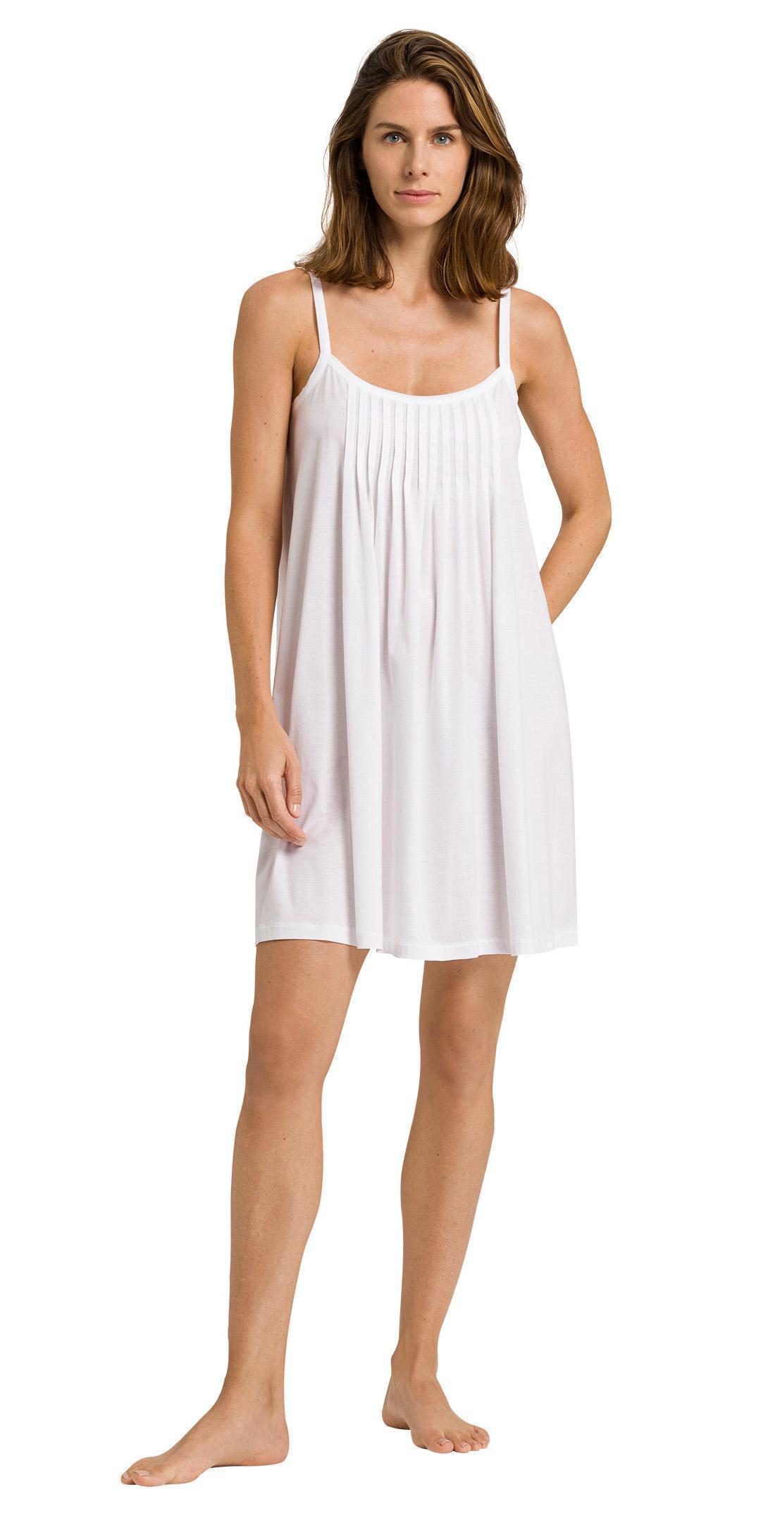 A purist's dream, the HANRO Juliet Babydoll features an elegant, spaghetti style and is tailored from incredibly soft 100% mercerized cotton. Featuring adjustable straps with metal hardware, for a custom fit, plus simple and stylish pleated details, this fresh nightgown is blissful to sleep in, but also works wonderfully as an easy-to-wear coverup at the beach or pool.