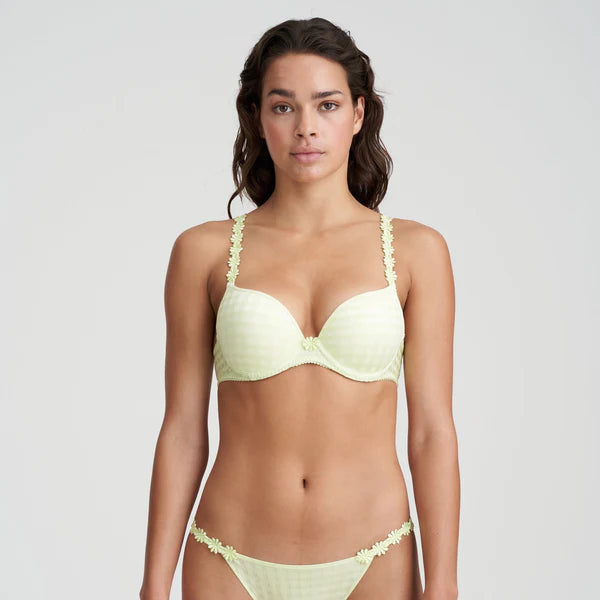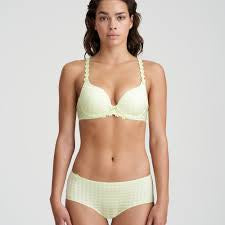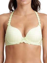Pre-shaped padded bra with heart-shaped cups. The straps can be worn over the shoulders or around the neck. The straight back with silicone band provides extra support. Atlantic Blue is a light, denim-blue hue. The slightly shiny fabric adds even more depth to this stylish color.