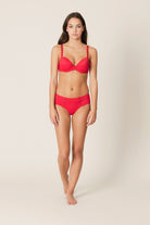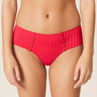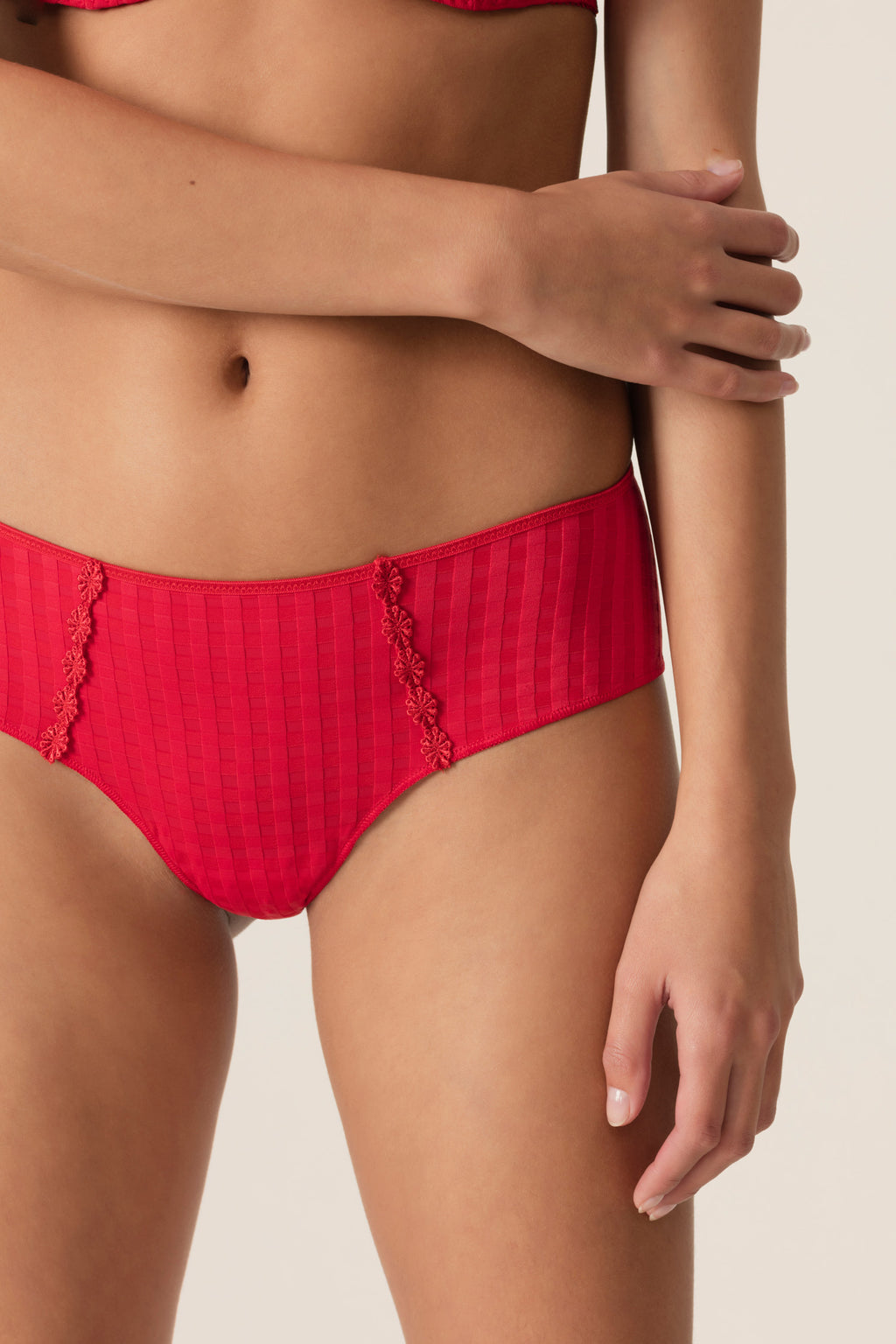 Hot pants have an elegant cut in the front like the Rio briefs and stop mid-bottom. These hot pants have a low rise. Completely opaque with two rows of Avero flowers in the front. Scarlet is a lipstick red that you just cannot do without. Not least because red is totally invisible under white.