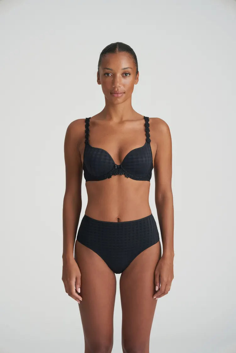 Pre-shaped padded bra with heart-shaped cups. The straps can be worn over the shoulders or around the neck. The straight back with silicone band provides extra support. Avero in Black is a real classic. Completely tone on tone to create a stylish look.
