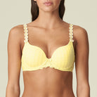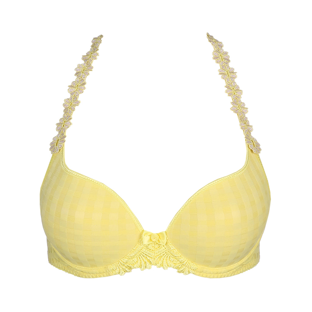 This popular Avero Collection combines soft, subtle, checkered fabric with a beautiful embroidered lace and daisy motif. The heart-shaped neckline flatters while sitting seamlessly under clothing.