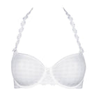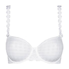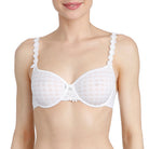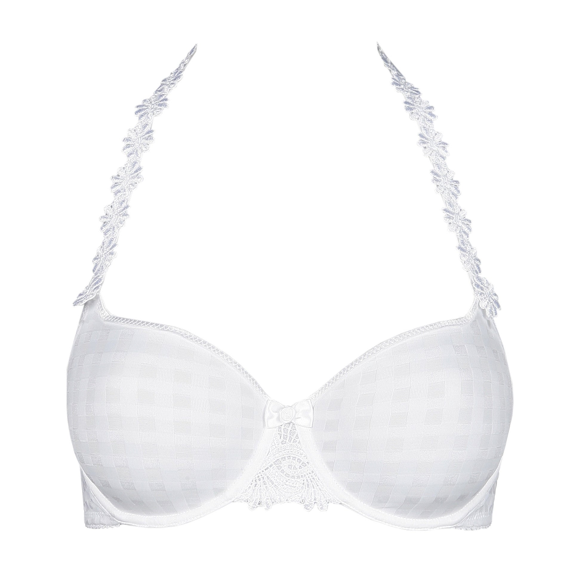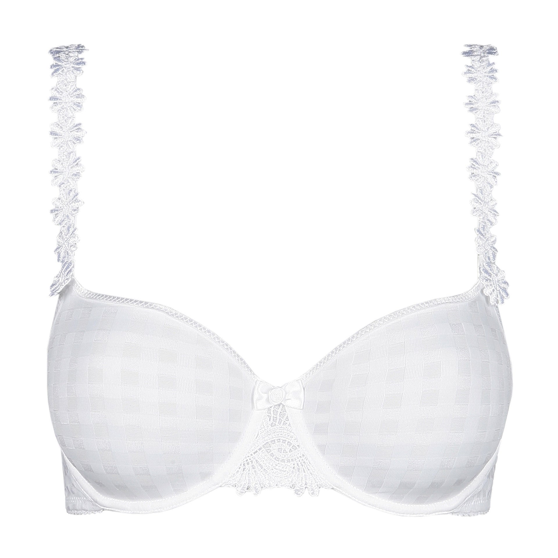 From the popular Avero Collection, a seamless, molded cup bra with adjustable multi-way straps. Checkered pattern body is trimmed with floral embroidered front straps. Provides natural lift without centering.