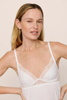 Lingerie with ease. Made from buttery soft TENCEL™ Modal fibers and a touch of elastane, this fabric is verified by OEKO-TEX® Standard 100, which means it was processed without harmful chemicals. This short, feminine slip features a plunge neckline, adjustable straps, lined cups, and scalloped lace details at the neckline, underbust, and hem. Layer underneath the Beatrix Robe for a soft self-care feel.
