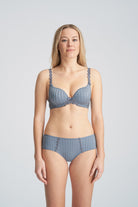 Hot pants have an elegant cut in the front like the Rio briefs and stop mid-bottom. These hot pants have a low rise. Completely opaque with two rows of Avero flowers in the front. Atlantic Blue is a light, denim-blue hue. The slightly shiny fabric adds even more depth to this stylish color.