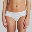 Hot pants have an elegant cut in the front like the Rio briefs and stop mid-bottom. These hot pants have a low rise. Completely opaque with two rows of Avero flowers in the front. White is pure, fresh and unwaveringly optimistic! In White, the daisies and checks are tonal.