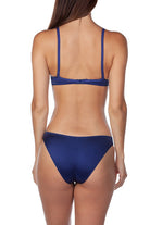 3 column, 1 row hook and eye back closure. Semi-sheer stretch lace. Microfiber frame and band. Show in red for a closer look of the fit. Also available in other colors.