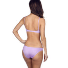 3 column, 1 row hook and eye back closure. Semi-sheer stretch lace. Microfiber frame and band. Also available in other colors.