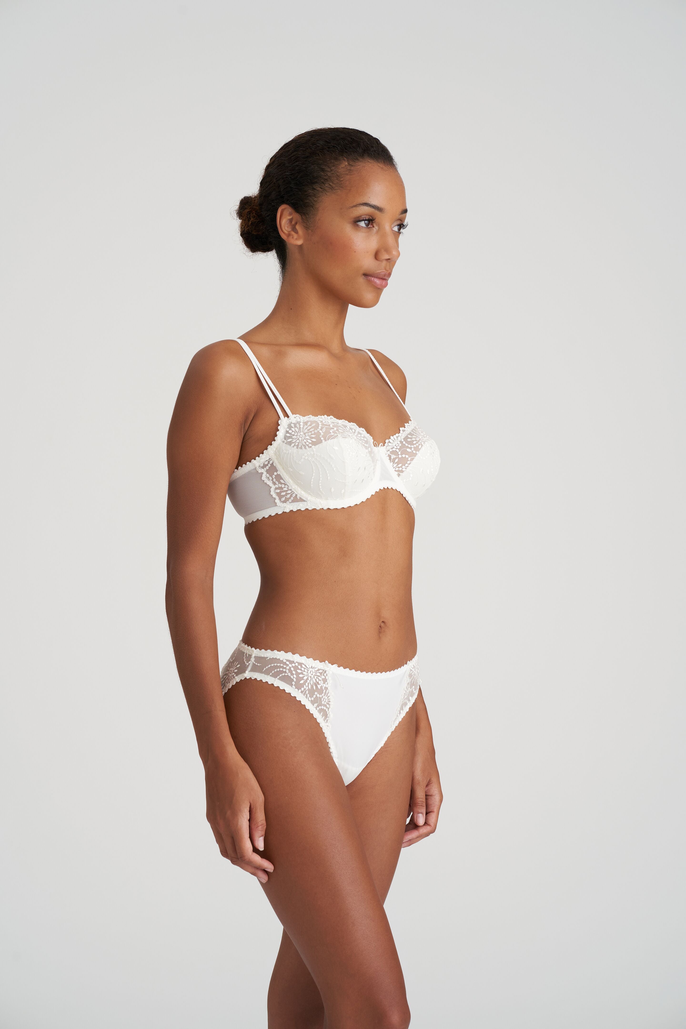 Fit with a capital F? Elegant embroidery for a stylish look? This balcony bra can give you both – effortlessly! The delicate straps add the perfect finishing touch to the young, up-beat look. Natural goes with everything and is perfect for brides! Style 0101335