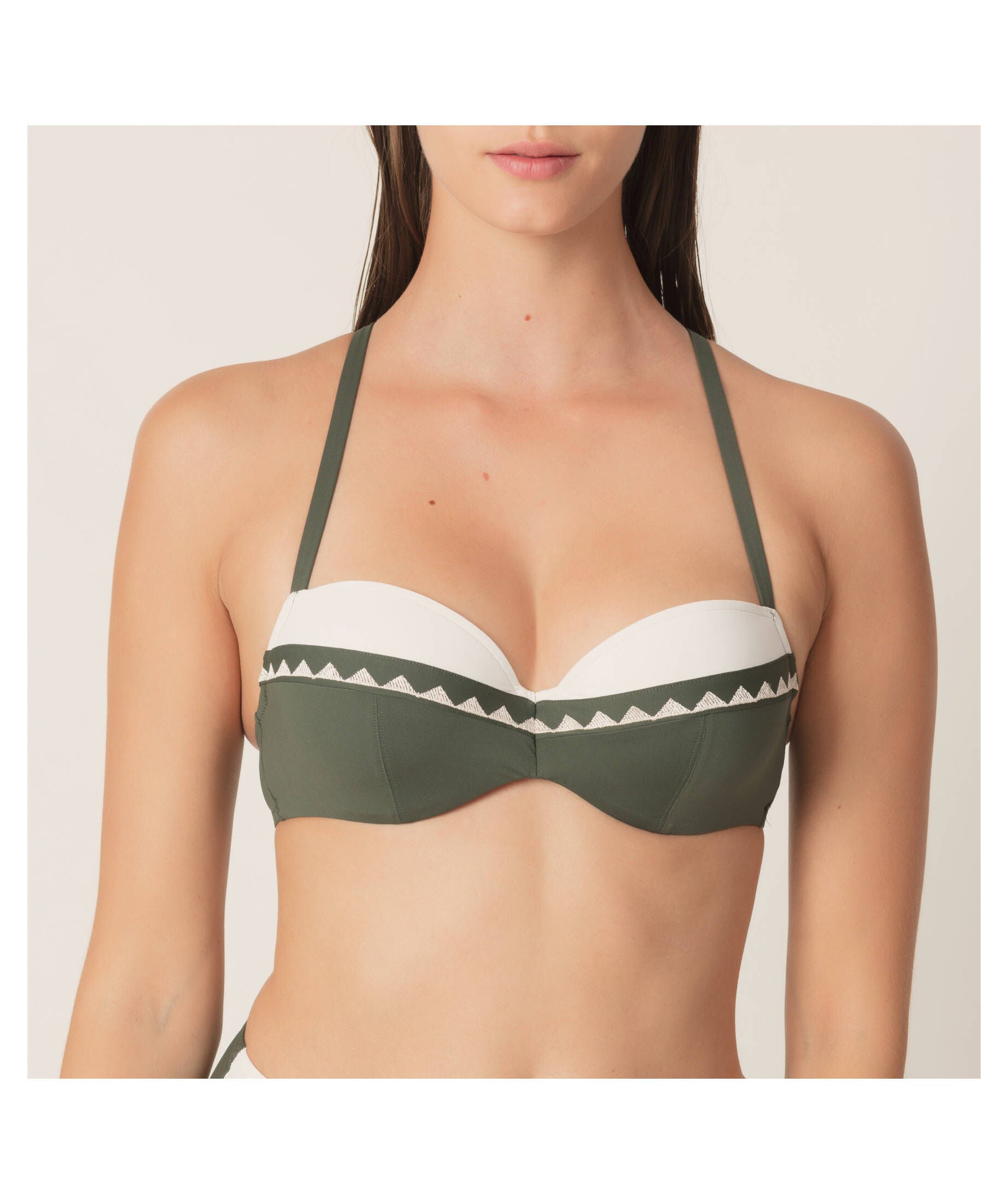 Stylish triangle bikini with padded cups. The striking colours and the graphic embroidery make this bikini a real eye-catcher on the beach or at the pool. For a modern and sophisticated look!