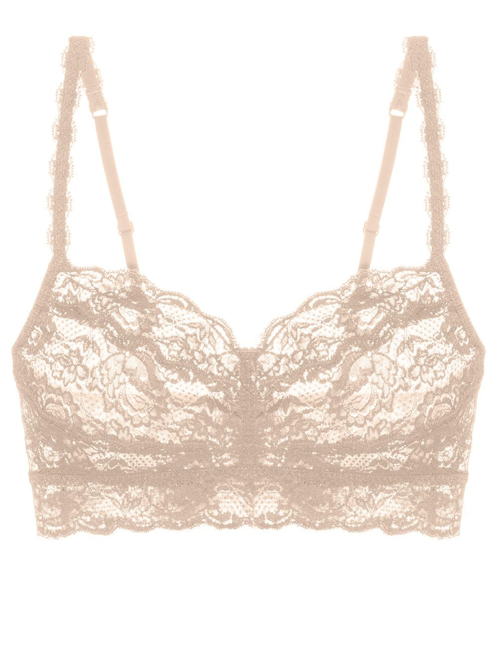 Cosabella's best-selling Never Say Never Sweetie bra features a supportive wireless fit. Allover scallop edge lace trim lies gently on skin. Semi sheer lace. Pull over style bra. Adjustable shoulder straps. Made in Italy. 93% Polyamide 7% Elastan