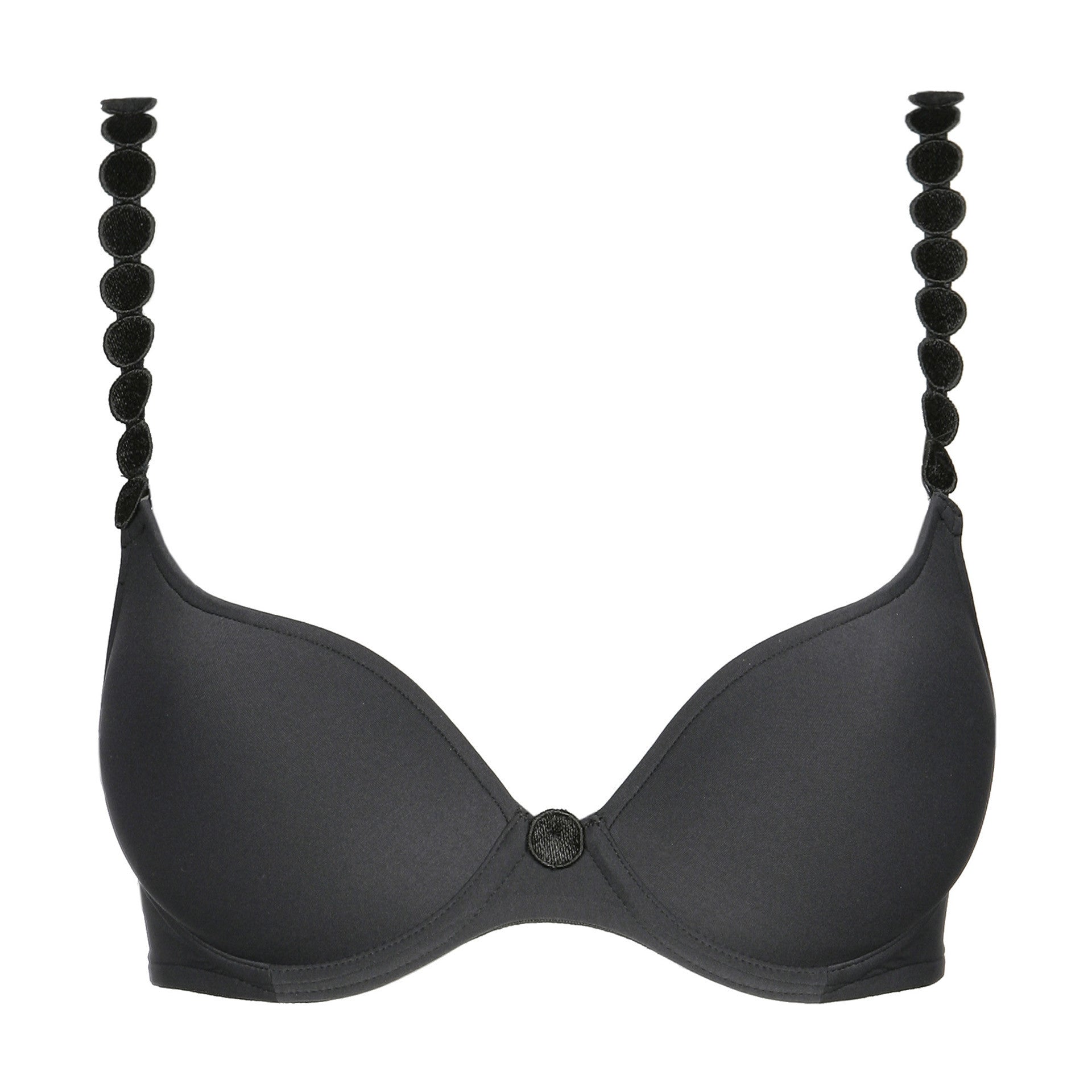 Contour/t-shirt bra has underwires that support the breasts for an even, smooth, rounded shape. Seamless cup is lightly padded for modesty. •Combines soft, subtle, fabric with beautiful dot appliques.