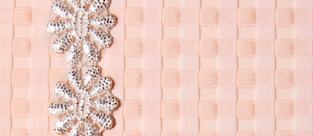 Combines soft, subtle, checkered fabric with a beautiful embroidered lace and daisy motif. • Elastic string sides feature daisy appliques for a beautiful touch.