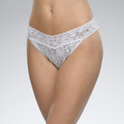- One-size thong in our signature stretch lace • Fits sizes 4-14 best (hips measuring 36"-45") • Original Rise fits higher on the hips • The World’s Most Comfortable Thong® • Hanky Panky’s revolutionary and flattering V-front, V-back waistband—our signature design for over 25 years • No visible panty line (VPL) • Body: 100% Nylon; Trim: 90% Nylon, 10% Spandex; Crotch Lining: 100% Supima® Cotton • Made in the USA