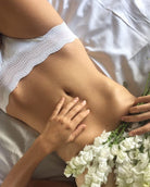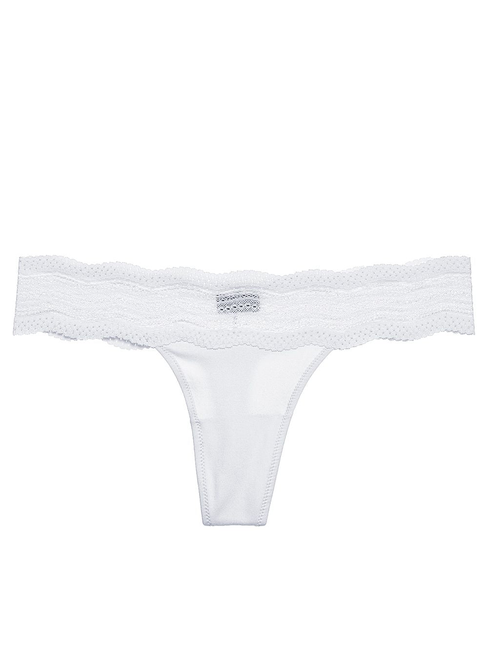The Dolce Thong is made from an ultra- soft cotton blend. Stretchy semi sheer chevron lace detail as waistband offers a comfortable fit. Cotton lined gusset. Medium rise. Minimal rear coverage. Made in Italy. 53% Cotton 36% Polyamide 11% Elastan