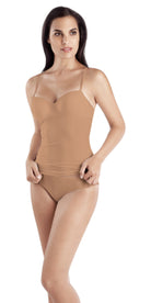 - Camisole top has adjustable, fabric-covered straps for smooth comfort
