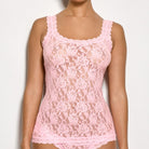 - Unlined camisole in lightweight stretch lace • Scoop neck • Wide straps are bra-friendly and non-adjustable • Scalloped lace trim at neckline, straps & hem • Approximately 24” long • Body: 100% Nylon; Trim: 90% Nylon, 10% Spandex • Made in the USA