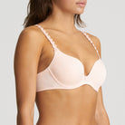 Contour/t-shirt bra has underwires that support the breasts for an even, smooth, rounded shape. Seamless cup is lightly padded for modesty. •Combines soft, subtle, fabric with beautiful dot appliques.