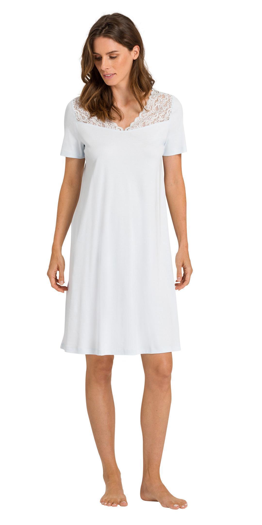 HANRO Moments Short Sleeve Gown | Cool Blue
