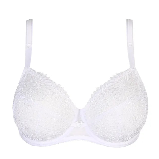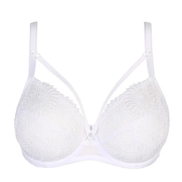 This full cup bra is sexy, comfortable and super-luxurious. The removable straps accentuate your feminine cleavage. Looks great under a V-neck top! Black embroidery with an edgy tattoo effect!