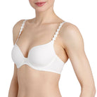 Contour/t-shirt bra has underwires that support the breasts for an even, smooth, rounded shape. Seamless cup is lightly padded for modesty. •Combines soft, subtle, fabric with beautiful dot appliques.
